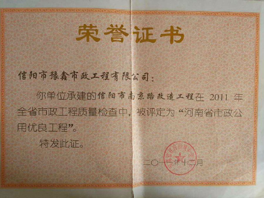 好風(fēng)憑借力,送我上青云。近年來(lái),公司積極參與城市市政基礎(chǔ)設(shè)施建設(shè)施工,積極參與市場(chǎng)競(jìng)爭(zhēng),先后承擔(dān)施工了市政府重點(diǎn)工程南京路道路改造工程、春曉路道路改造工程,東方紅大道道路改造工程、龍江東路新建工程等重點(diǎn)民生工程,其中南京路道路改造工程被省建設(shè)廳評(píng)為“中州杯”, 春曉路和東方紅大道道路改造工程被省建設(shè)廳評(píng)為“省優(yōu)工程”,成為城區(qū)一道道亮麗的風(fēng)景線。參與施工了市典范小區(qū)“臺(tái)北城上城”、“恒大名都”以及師范學(xué)院、職業(yè)技術(shù)學(xué)院、交警支隊(duì)和軍區(qū)道路工程,參與施工了雞公山管理區(qū)、南灣管理區(qū)、明港鎮(zhèn)和羅山縣等部分道路小區(qū)工程施工,累計(jì)大小各類(lèi)施工工程三百余項(xiàng),企業(yè)影響力不斷擴(kuò)大、輻射力不斷增強(qiáng),市場(chǎng)份額不斷提高,企業(yè)信譽(yù)不斷彰顯,為信陽(yáng)城市建設(shè)做出了積極貢獻(xiàn),為企業(yè)的可持續(xù)發(fā)展插上了騰飛的翅膀。